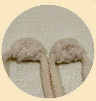 • Coudre les oreilles entre T5–T6, à environ 3 mailles l’une de l’autre. Utilisez les pattes avant comme référence ; alignez les oreilles avec les pattes.