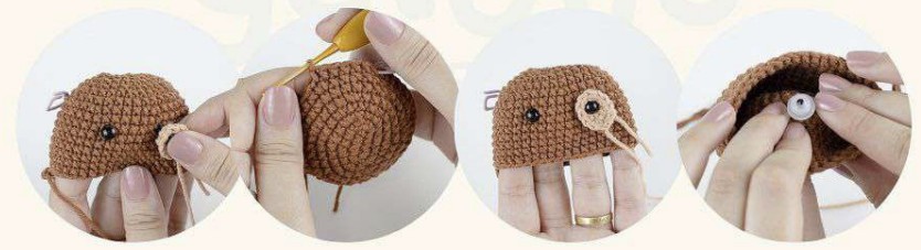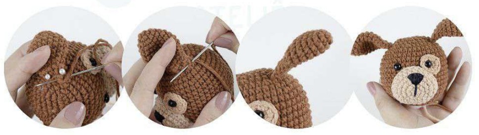 Coudre d’abord la partie supérieure de l’oreille à la tête, puis coudre la partie inférieure à la tête. De cette manière, les oreilles seront plus tombantes.