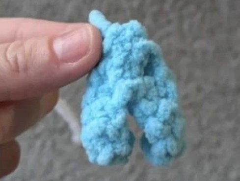 Coudre les pieds aux tours 3-4 du corps de chaque côté, à environ deux ou trois mailles d’écart.