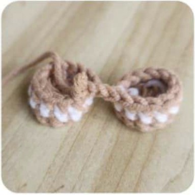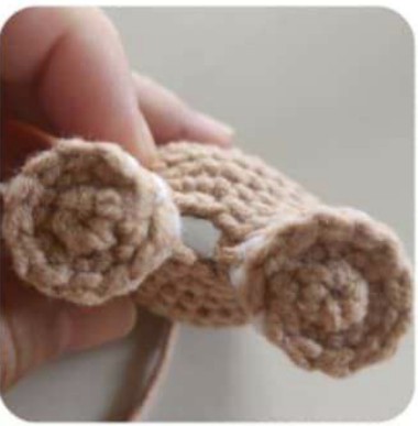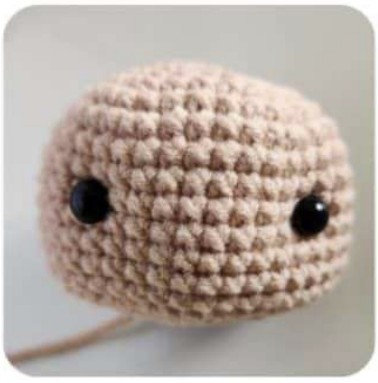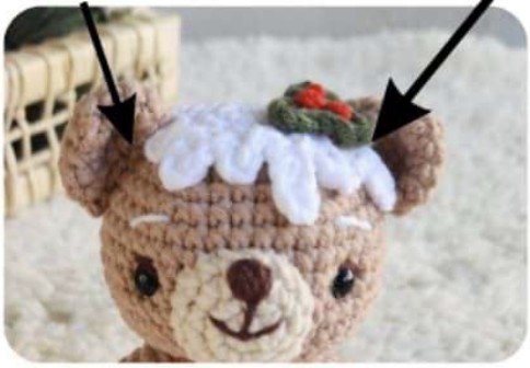 Coudre l’oreille entre les tours 4 à 8, à 4 ms des yeux.