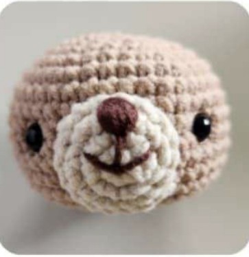 Coudre le museau entre les tours 9 à 14. Broder le nez et la bouche.