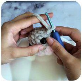 Les oreilles sont réalisées en crochet de surface. Nous commencerons par l’oreille droite