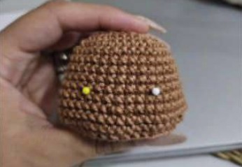 Coudre sur les côtés de la tête entre les tours 3 et 7.