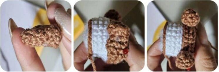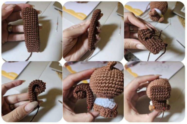 Coudre la queue à l’arrière du corps entre les tours 4 et 5.
