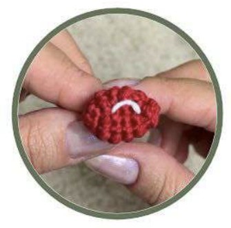 Insérer les yeux de sécurité entre les tours 20 et 21, avec 7 mailles d’espace entre eux.