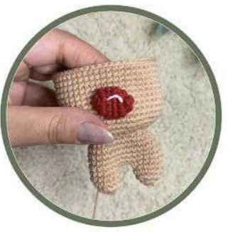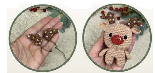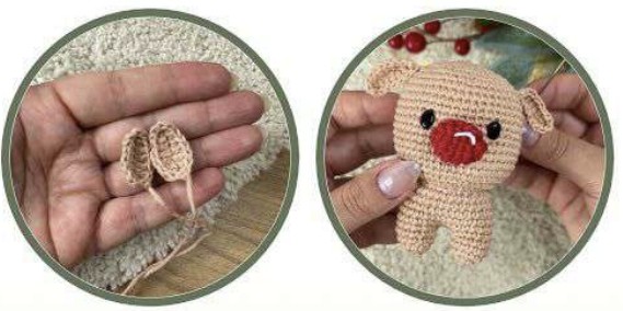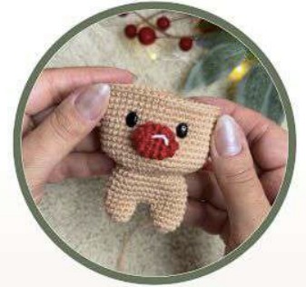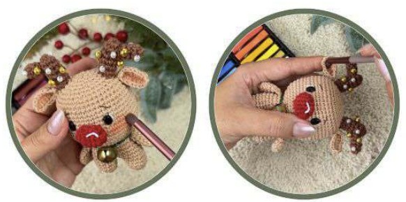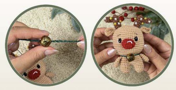 Coudre le nez du renne centré sur l’avant, au-dessus du tour 16.