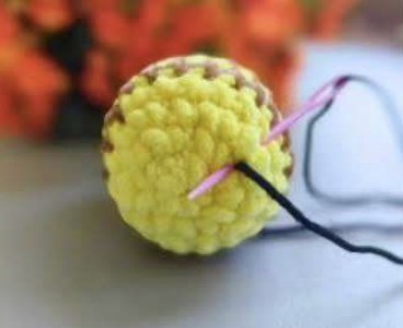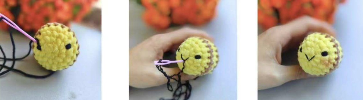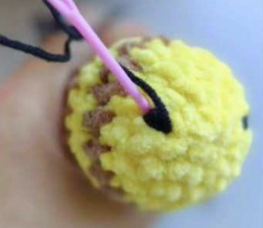 Joindre avec 1 mc dans la maille suivante du corps de l’abeille.