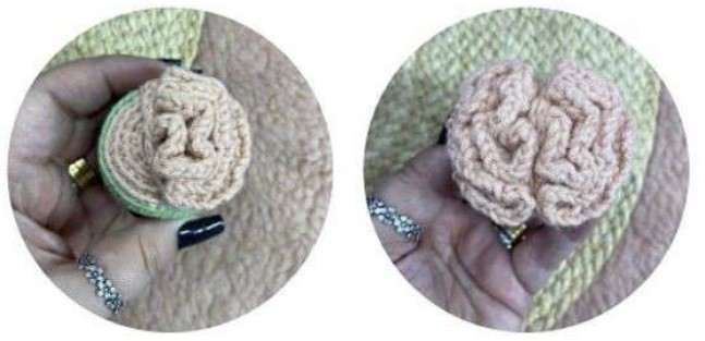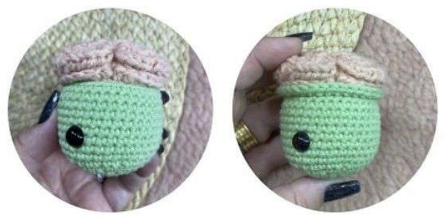 Le porte-clés au crochet ne se compose que de la tête du zombie. Nous allons crocheter la tête du jouet, mais le cerveau du jouet est visible à l’extérieur. Bien que cela donne un aspect assez amusant, je pense que c’est une excellente option pour Halloween. Vous devrez utiliser un bouton pour réaliser l’un des yeux du jouet.