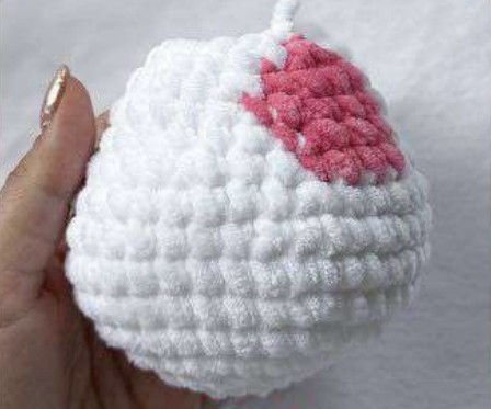 Les augmentations du tour 8 formeront les joues et la zone du nez. Ajoutez un peu de rembourrage supplémentaire à cet endroit.