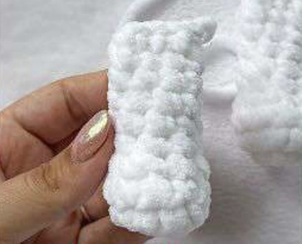 Pliez et faites 4 ms sur le haut pour fermer, aligné avec les augmentations.