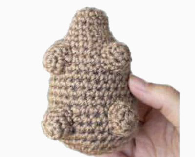 Rang 4 : Aplatir l’oreille et crocheter en prenant deux mailles à la fois, en réalisant 2 ms et en fermant l’oreille (2)
