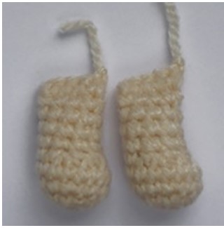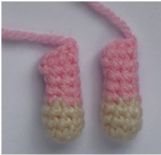 6) Nous crochetons la première jambe 4 ms, 9 ms, crochetons la deuxième jambe 4 ms, 7ms (24)