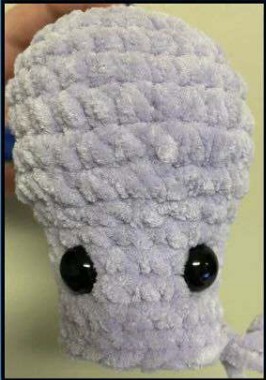 Arrêter le fil, laisser une queue pour fermer le trou avec l’aiguille à repriser. Félicitations pour avoir terminé votre pieuvre !