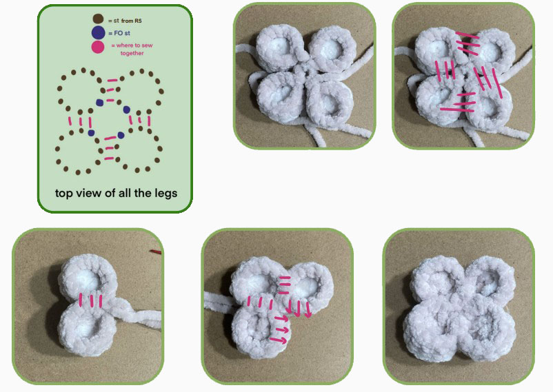 Étape 5 : Coudre le petit trou au centre une fois toutes les jambes attachées