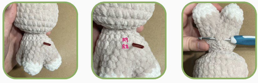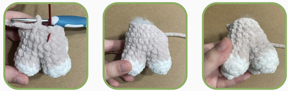 Il peut rester de petits trous entre les jambes après le rembourrage ; vous pouvez vous arrêter et les coudre à ce moment-là.