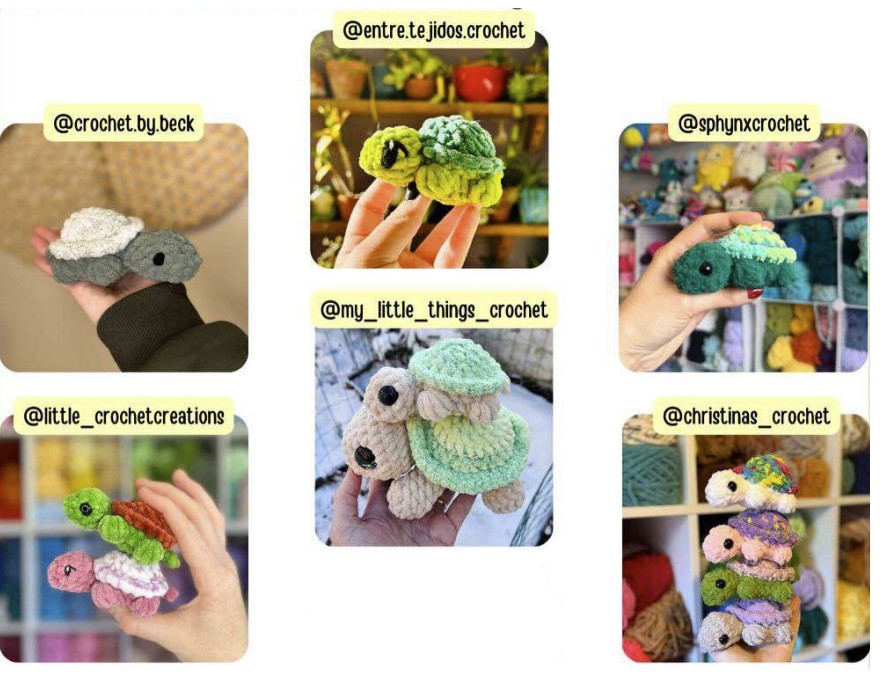 Dans les photos ci-dessous, vous pouvez voir les photos de jouets amigurumi testés et réalisés du modèle de tortue au crochet.